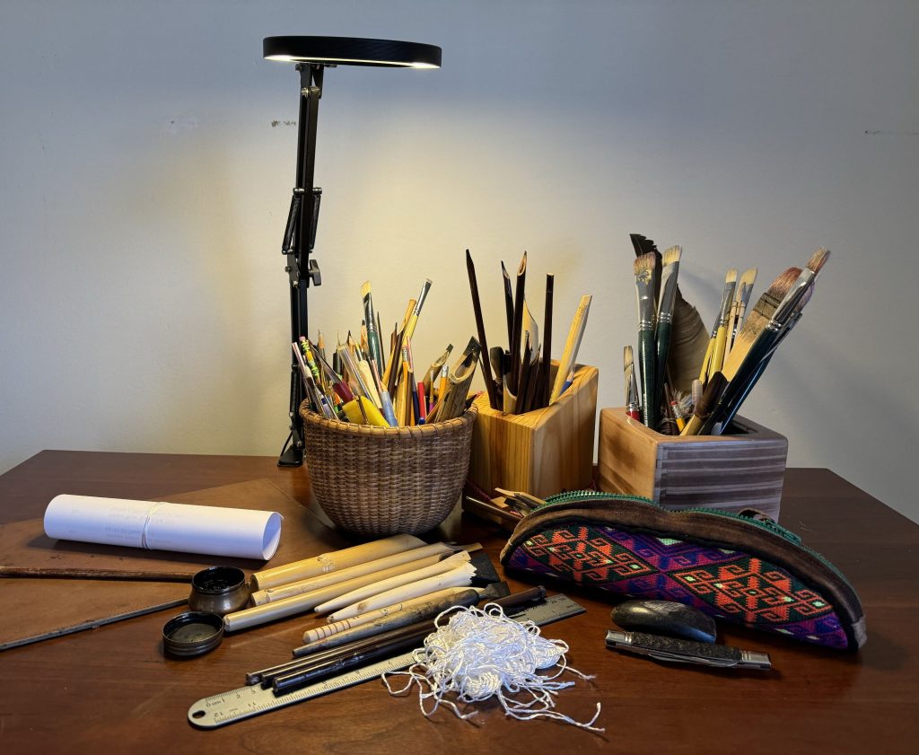 The tools of calligraphy are simple, precise, and unforgiving. Bamboo pens, handmade paper, ink, sharp knives, rulers—each one must be prepared and respected.